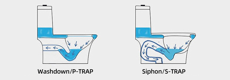 Sewage discharge capacity: The siphon toilet can be easily flushed to the inner wall of the toilet, but it is not so easy to deal with large-scale dirt, which is easy to cause blockage.
